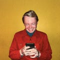 The man watching the commercial in his bedroom lets his own smile escape, not a norm. But it happens. He can’t help it.